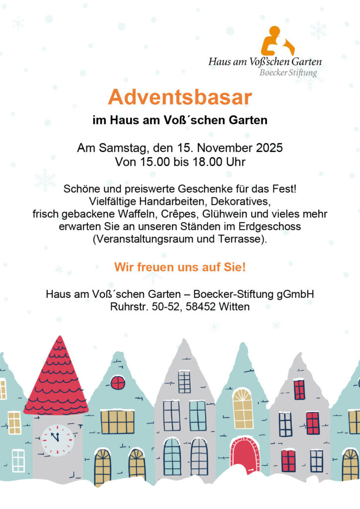 Unsere Einrichtungen im Zentrum der Stadt Witten bieten pflegebedürftigen Menschen Beratung zu den Angeboten der Boecker-Stiftung. Wir ermöglichen das Mitbringen persönlicher Gegenstände, respektieren den Wunsch nach einer persönlichen und wohnlichen Umgebung und bieten Rückzugsmöglichkeiten für Bewohnerinnen und Bewohner. Auch die Wünsche und Ängste der Angehörigen nehmen wir ernst und bieten ihnen Unterstützung an.