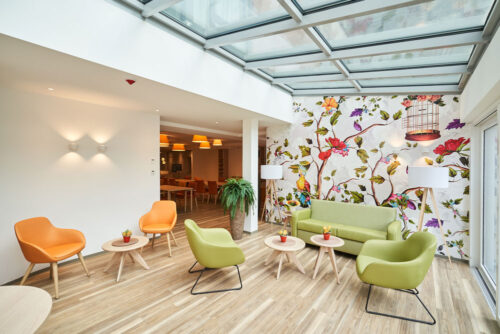 TKI Einrichtungen GmbH aus Mönchengladbach hat für unsere neue Tagespflege ein Umfeld mit einem Farb- und Materialkonzept geschaffen, das die unterschiedlichen Gäste und ihre Bedürfnisse unterstützt und positive Stimmungen fördert. Die Gäste sollen sich bei uns wohl und sicher aufgehoben fühlen. Optimierte Funktionsabläufe und ein gut funktionierendes Orientierungssystem runden das Konzept ab.