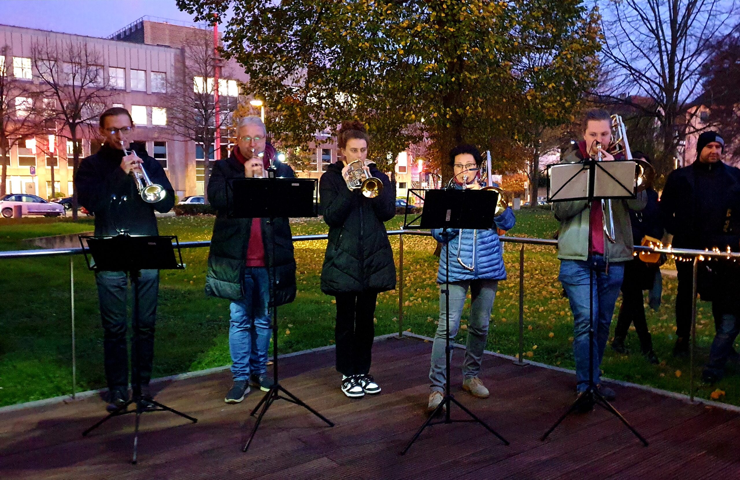 Über 100 Grundschulkinder der Gerichtsschule Witten kamen vor dem Dinner mit ihren Laternen und sangen gemeinsam mit Bewohnern und ihren Angehörigen die bekannten Martinslieder. Begleitet wurden sie vom Posaunenchor und Herrn Tutzschke (Pop-Akademie Witten) am Klavier.