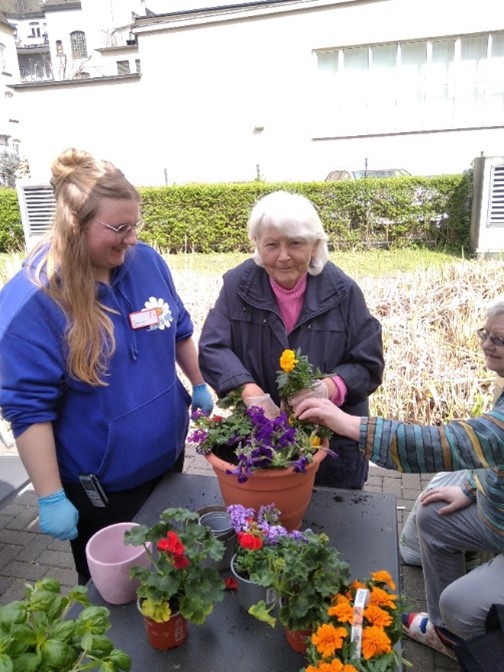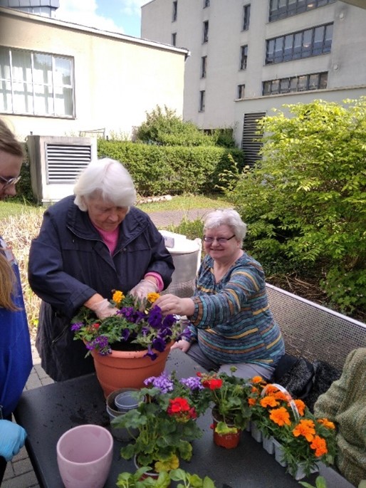 Das gemeinsame Pflanzen bot nicht nur die Gelegenheit, an der frischen Luft aktiv zu sein, sondern auch schöne Gespräche zu führen und Erinnerungen an frühere Gartenerlebnisse auszutauschen. Außerdem wurde im Garten am Ende des Tages noch gemeinsam gesungen.