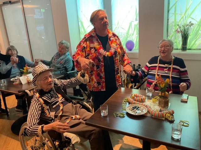 Hoch her ging es bei den beiden Karnevalsfeiern bei Leben im Alter. Herr Kegel sorgte im BistroB mit den bekannten Karnevalsklassikern für gute Stimmung. Hier wurde geschunkelt, getanzt und gesungen. Bei der Polonaise hielt es dann viele Bewohner und Gäste nicht mehr auf ihren Plätzen und die Polonaise zog durch das BistroB. Bei Berliner Ballen und ausgelassener Stimmung feierten die Bewohner den Karneval.