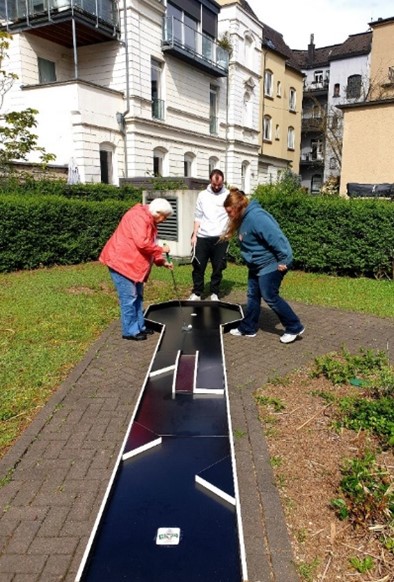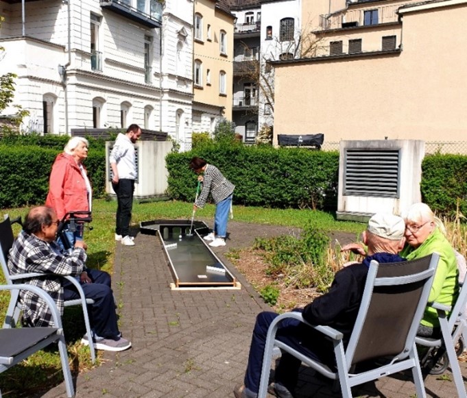Bei strahlendem Sonnenschein verwandelte sich der Garten des Hauses am Voß’schen Garten in eine fröhliche Minigolfanlage. Mit viel Begeisterung und guter Laune versuchten sich unsere Bewohner an der Minigolfbahn und genossen die Bewegung an der frischen Luft. Unterstützt wurden sie dabei tatkräftig von unseren engagierten Praktikanten Fynn und Lena, die mit Rat und Tat zur Seite standen. Es war ein rundum gelungener Nachmittag, der allen viel Freude bereitet hat!