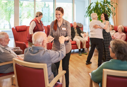 Unsere qualifizierten Mitarbeitenden schaffen Orientierung, nehmen Ängste und haben Zeit für ein Gespräch. Mit Fantasie und Engagement entwickeln wir regelmäßig neue, kreative Möglichkeiten, damit unsere Bewohnerinnen und Bewohner sowohl in der Gruppe als auch als Einzelperson aktiv bleiben und an der Gemeinschaft teilhaben können.