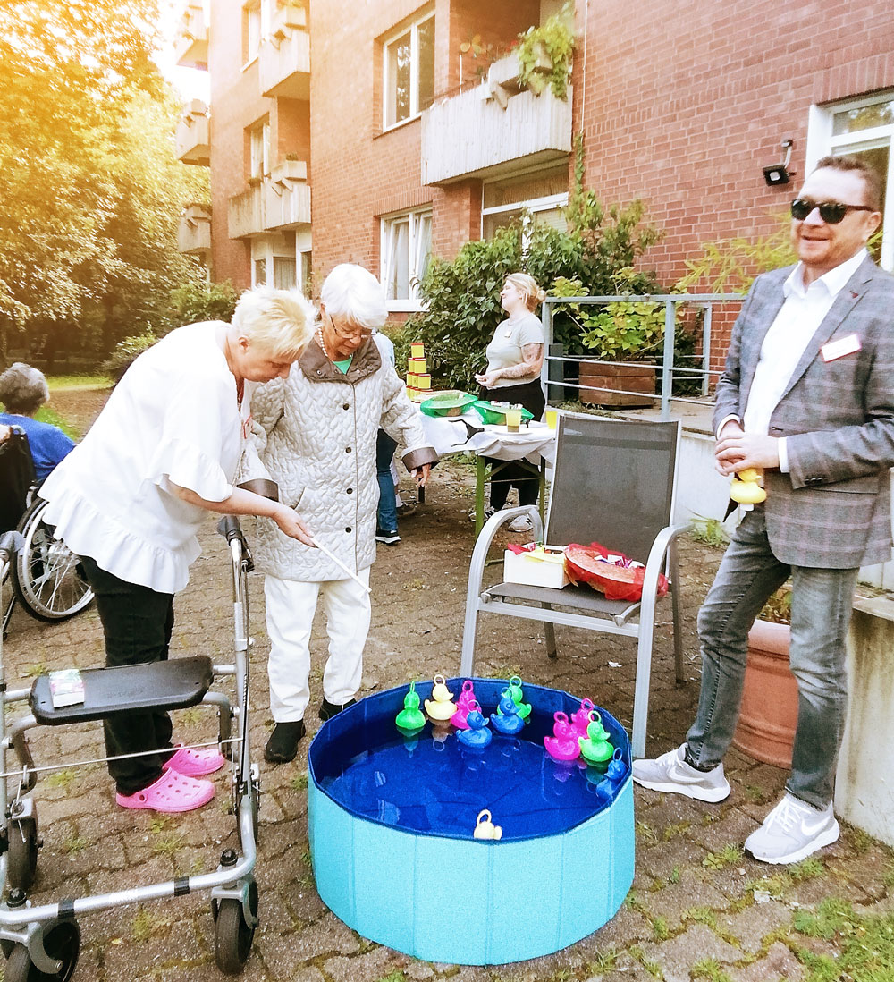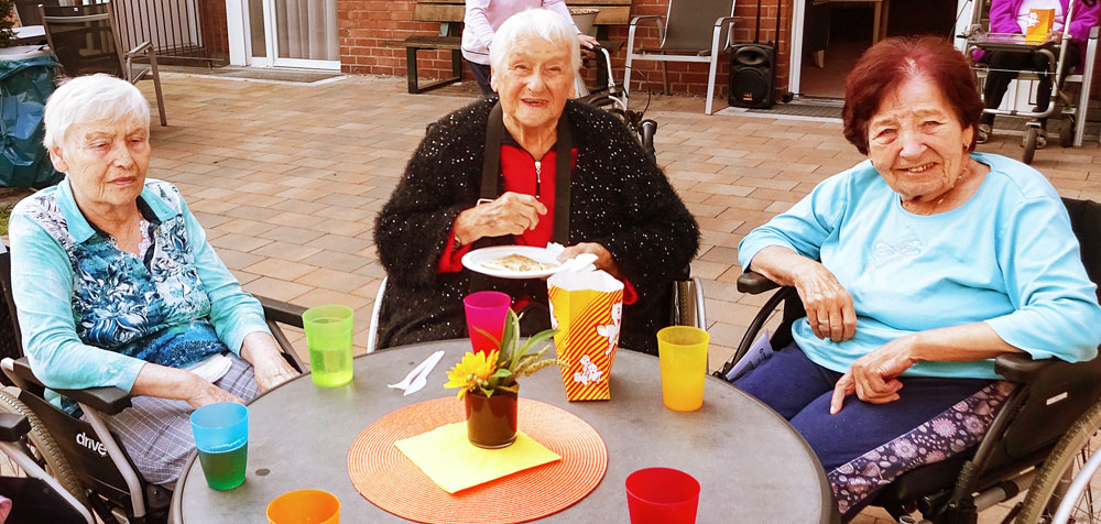Wir feiern regelmäßig mit unseren Bewohnerinnen und Bewohnern. Und Feste gibt es viele: Silvester, Karneval, Sommerfest, Weinachten. Im Sommer feiern wir im Garten und genießen Musik, Eis, Cocktails und gegrillte Delikatessen.