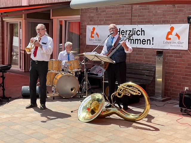 Bei Sonnenschein genossen die Bewohnerinnen und Bewohner, sowie alle Angehörigen und die Mieter und Mieterinnen der Seniorenwohnungen, das diesjährige Sommerfest. Nach dem ökumenischen Gottesdienst begann das bunte Musikprogramm. Die Casanova Jazz Band und Sänger Cud Kegel sorgten mit flotten Melodien für gute Stimmung. Frau Weidemann besuchte mit ihren kleinen Ponys die Bewohner. Für den Hunger zwischendurch hatte das Küchenteam Köstlichkeiten vom Grill und Kuchen vorbereitet. Beim Glücksrad konnten wieder schöne Preise gewonnen werden. Am Ende des Nachmittages waren sich alle einig, dass es gelungenes Fest war.