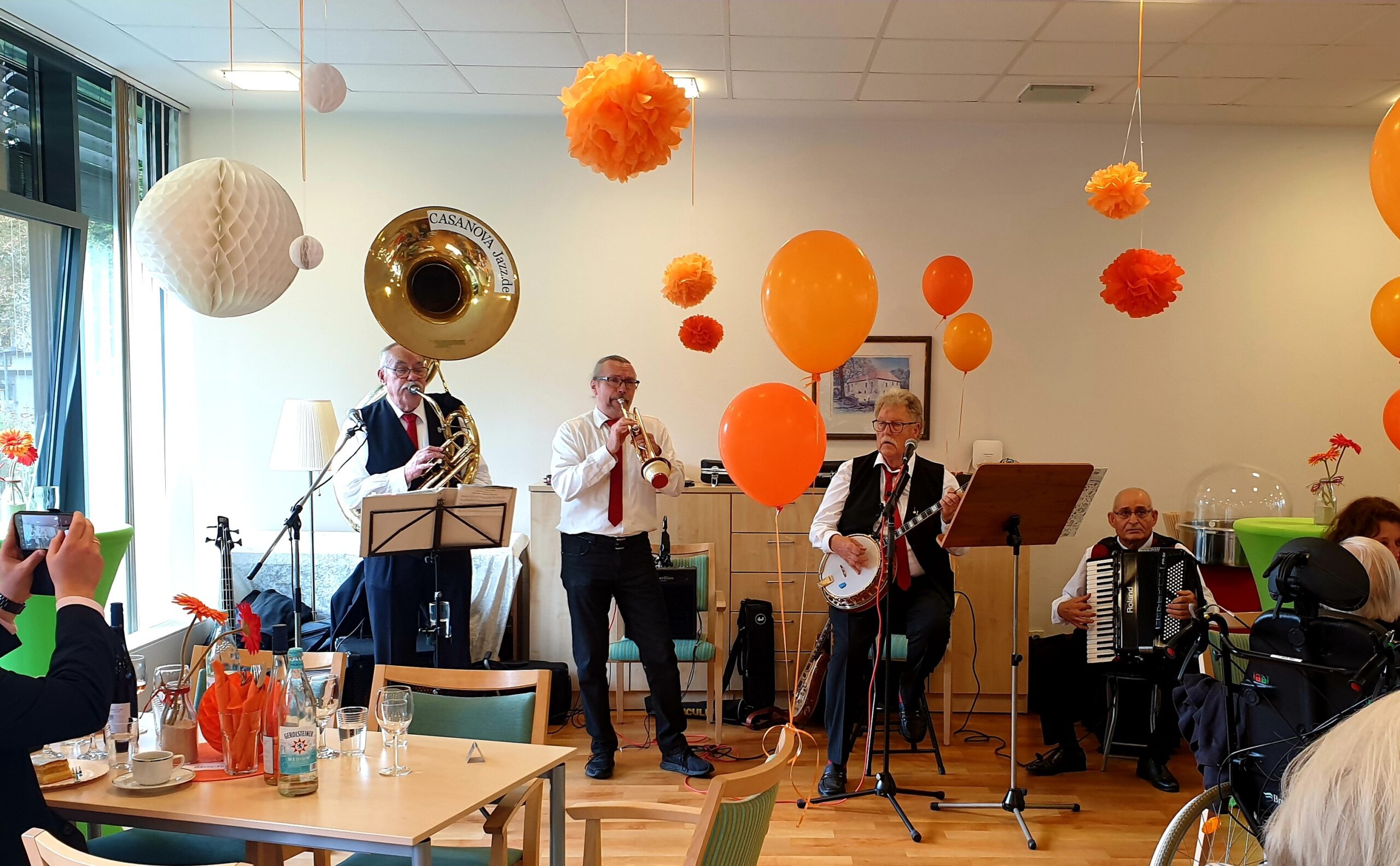 Auch Wittens Bürgermeister ließ es sich nicht nehmen, die Bewohner und Besucher persönlich zu begrüßen und mit uns gemeinsam zu feiern. Musikalisch verwöhnte uns die Casanova-Jazz-Band aus Witten mit altbekannten Schlagern. Es wurde getanzt, gesungen und gelacht. Außerdem genossen unsere Bewohner viele schöne Momente mit den liebevollen Miniponys von Caroline Weidemann mit sanften Streicheleinheiten.